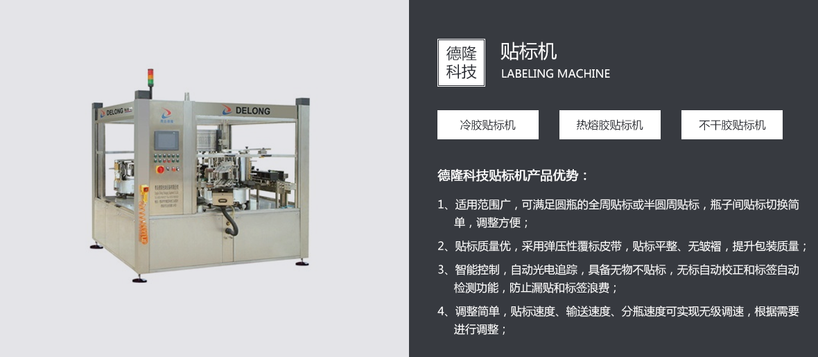 青島德隆自1995年創(chuàng)建以來,始終秉承創(chuàng)新與發(fā)展的優(yōu)良傳統(tǒng),依靠技術(shù)與服務(wù)贏得客戶的信賴與尊重。在貼標(biāo)機(jī)向?qū)W⒒?、多行業(yè)領(lǐng)域發(fā)展并成就了中國異型瓶貼標(biāo)市場的經(jīng)典之后,應(yīng)市場不斷變化的客戶需求,優(yōu)化產(chǎn)品結(jié)構(gòu),引進(jìn)吸收國內(nèi)外的流體包裝設(shè)備理念,在貼標(biāo)機(jī)專業(yè)化地位穩(wěn)固的前提下,逐步實(shí)現(xiàn)關(guān)聯(lián)產(chǎn)品的多元化。   目前,青島德隆已經(jīng)成為國內(nèi)能同時滿足圓瓶、方瓶、扁瓶、錐度瓶、球形瓶、定位瓶等瓶型的高、中、低速多功能冷(熱)膠貼標(biāo)領(lǐng)域的廠家。隨著碼/卸(瓶/罐)垛機(jī)、沖瓶機(jī)、灌裝擠(旋/壓)蓋機(jī)、全自動紙箱包箱設(shè)備、排序機(jī)、機(jī)器人碼/卸垛設(shè)備、激光噴碼機(jī)的運(yùn)行成功,一個真正的流體包裝設(shè)備方案解決專家已經(jīng)成熟。   青島德隆集團(tuán)的···......[查看詳情]